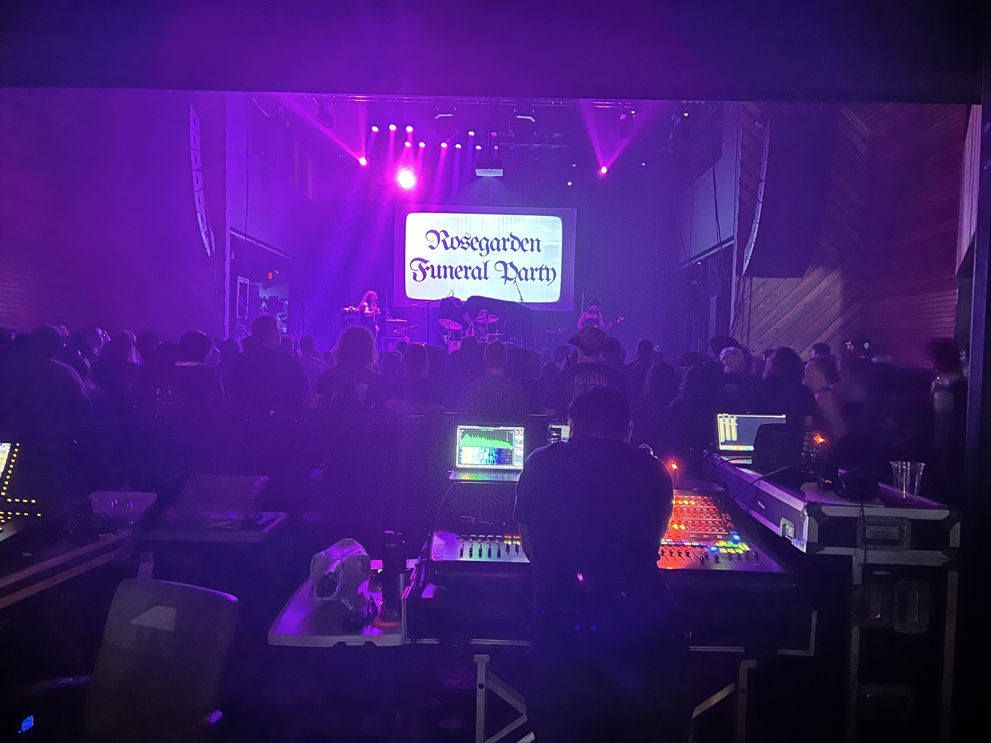 First band: Rosegarden Funeral Party, dark rock from Dallas. Took the sound peeps half the set to de-muddy the sound, but they were great regardless. (Still couldn’t hear the guitar.)